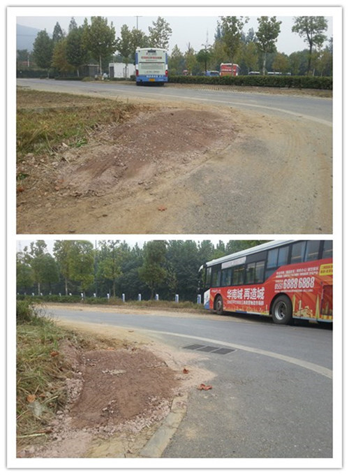 目前高新公交開(kāi)福寺停車(chē)場(chǎng)場(chǎng)內的車(chē)位數量已經(jīng)飽和,車(chē)位數量的限制,使車(chē)輛停放成了大難題。為了保障高新公交的85輛公交車(chē)能全部在場(chǎng)內停放,運營(yíng)管理部對場(chǎng)內停車(chē)位進(jìn)行了重新的規劃。規劃后的停車(chē)位雖解決了車(chē)輛停放的問(wèn)題,但給加油車(chē)輛、進(jìn)出車(chē)輛帶來(lái)了一定的影響,經(jīng)常會(huì )出現因車(chē)輛轉彎半徑不夠,需要借道才能通過(guò),久而久之瀝青路邊上的泥土道路就被壓出了坑,車(chē)輛每每都冒著(zhù)掛底盤(pán)的風(fēng)險顛簸著(zhù)經(jīng)過(guò)。為了保障車(chē)輛行駛安全,借助這次道路翻建,運營(yíng)管理部工作人員利用小推車(chē),來(lái)來(lái)往往的拉了十多車(chē),將場(chǎng)內兩個(gè)轉彎處較深的坑填平,基本滿(mǎn)足了車(chē)輛轉彎的平穩通行。