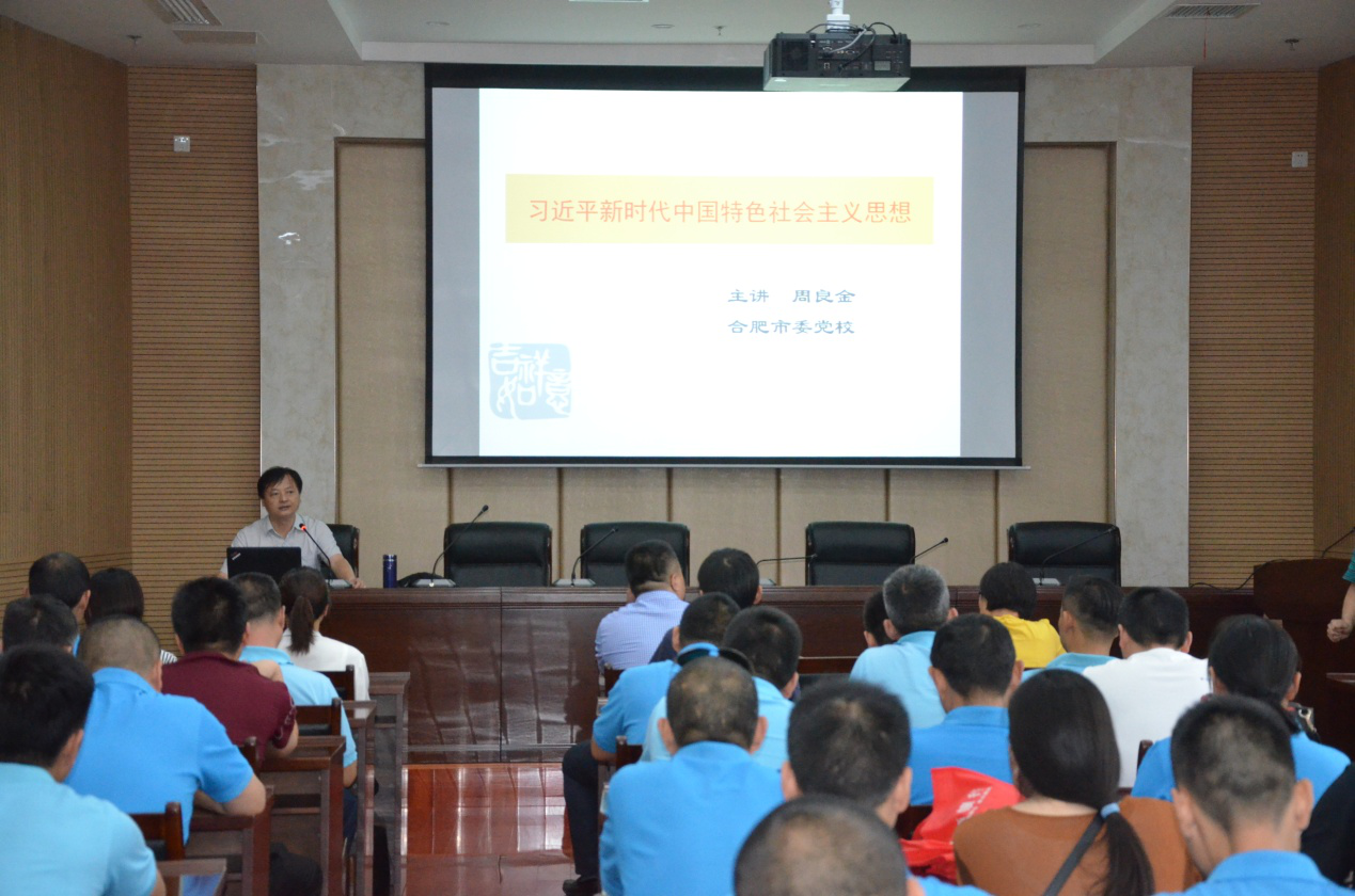 此次學(xué)習特邀合肥市委黨校具有多年黨史研究經(jīng)驗的周良金教授為大家授課。周教授深入淺出的分別從習近平新時(shí)代中國特色社會(huì )主義思想的時(shí)代背景、思想內容及戰略部署三個(gè)方面給大家進(jìn)行了詳細的闡述,對習近平新時(shí)代中國特色社會(huì )主義思想中十四個(gè)堅持的內容進(jìn)行了深入剖析。周教授講課主題鮮明、形象生動(dòng)、分析透徹,參會(huì )人員認真聽(tīng)講,不時(shí)發(fā)出共鳴。
